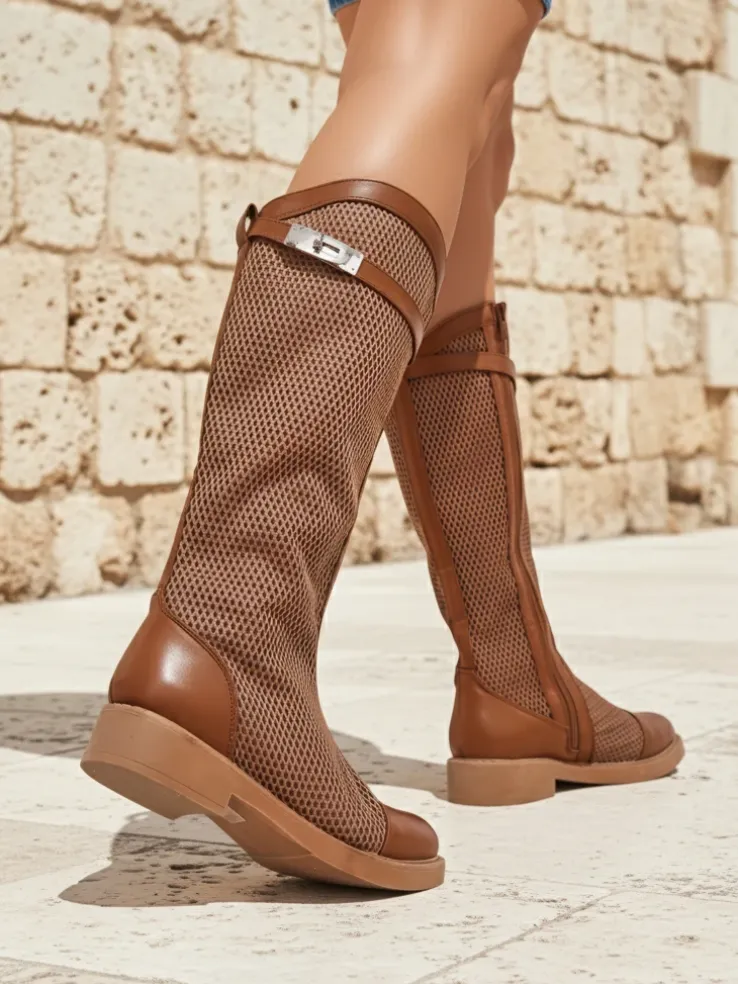 - Wyjątkowe botki damskie wykonane z tkaniny a’la siateczka i skóry ekologicznej z wykończeniem ażurowym oraz eko skórzanej wkładki. Model zapinany na zamek. Idealne do jesiennych stylizacji!.