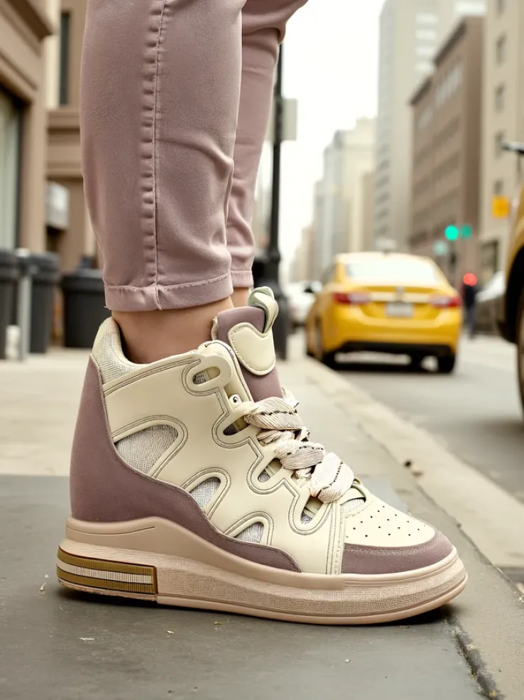 - Wygodne damskie buty sportowe z ukrytym koturnem, wykonane z eko skóry i eko zamszu. Model zawiązywany na sznurówki, wkładka tkaninowa. Cholewka z lekkością dopasuje się do stopy. Super stylowy dodatek!