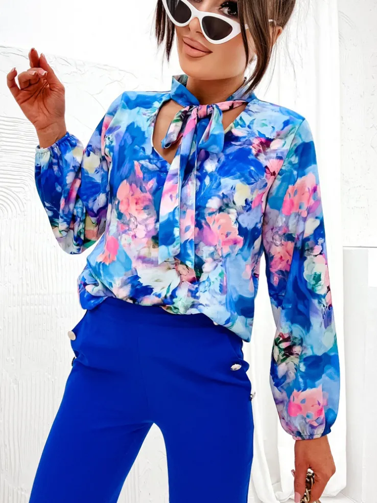 - Elegancka wzorzysta bluzka z subtelnie wiązaną kokardą podkreśla kobiecą delikatność. Miękki materiał otula sylwetkę, a kokarda dodaje wyrafinowanego akcentu. Idealna na wieczorne wyjścia i specjalne okazje!