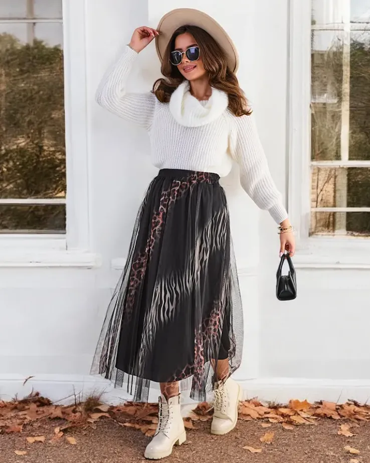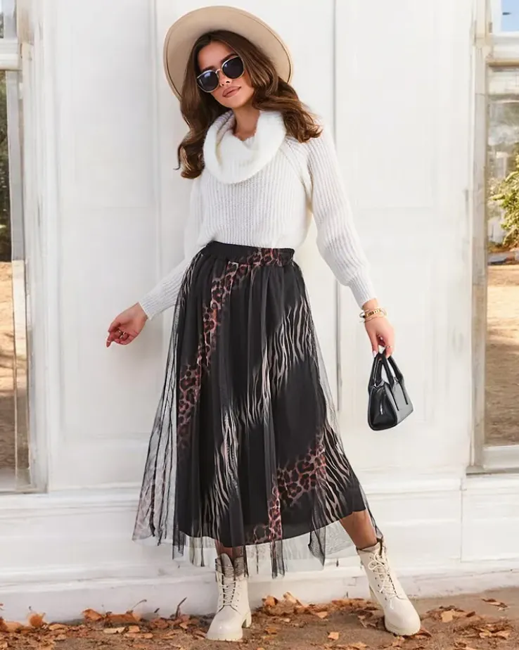 - Tiulowa spódnica damska o długości midi, wykonana z lekkiej tkaniny. Model z podszewką, w pasie rozciągliwa gumka. Spódnica będzie świetna na jesień! UWAGA: Dokładność pomiaru (+/-) 1 cm.