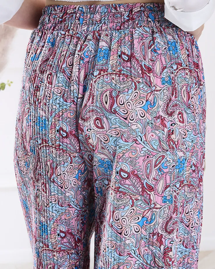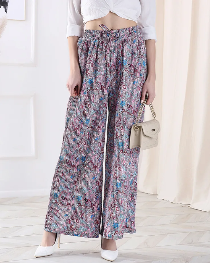 Royalfashion Wzorzyste szerokie spodnie damskie w kolorze niebieskim