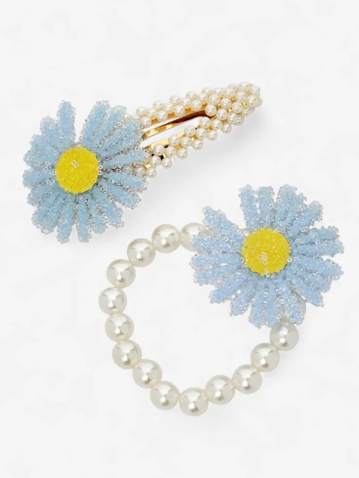 Royalfashion Zestaw spinki i gumki z kwiatem Flora Perla