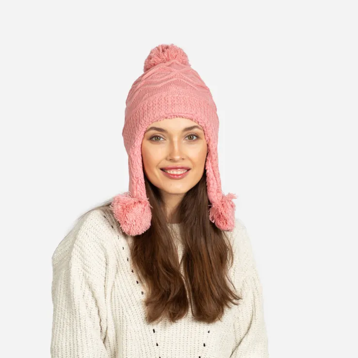- Wyjątkowa damska ocieplana czapka zimowa. Model z miękką futrzaną podszewką, zdobiony puszystymi pomponami. Idealna na chłodne i zimowe dni!