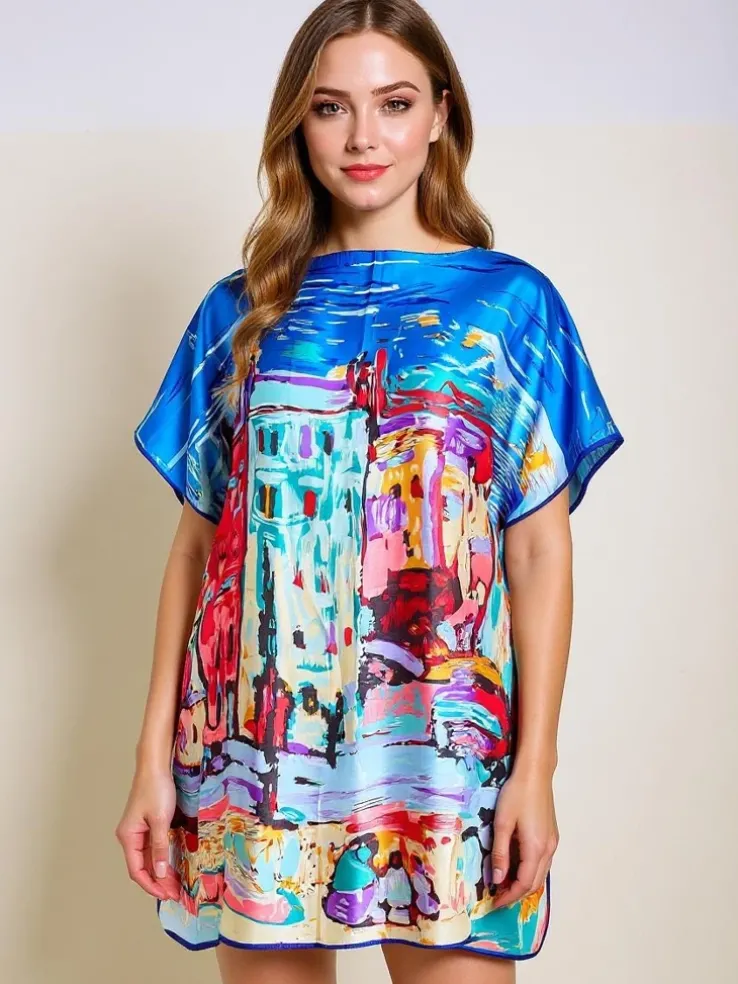 Sukienka pareo Demetria Royalfashion – wielokolorowa, uniwersalna, do kolana
