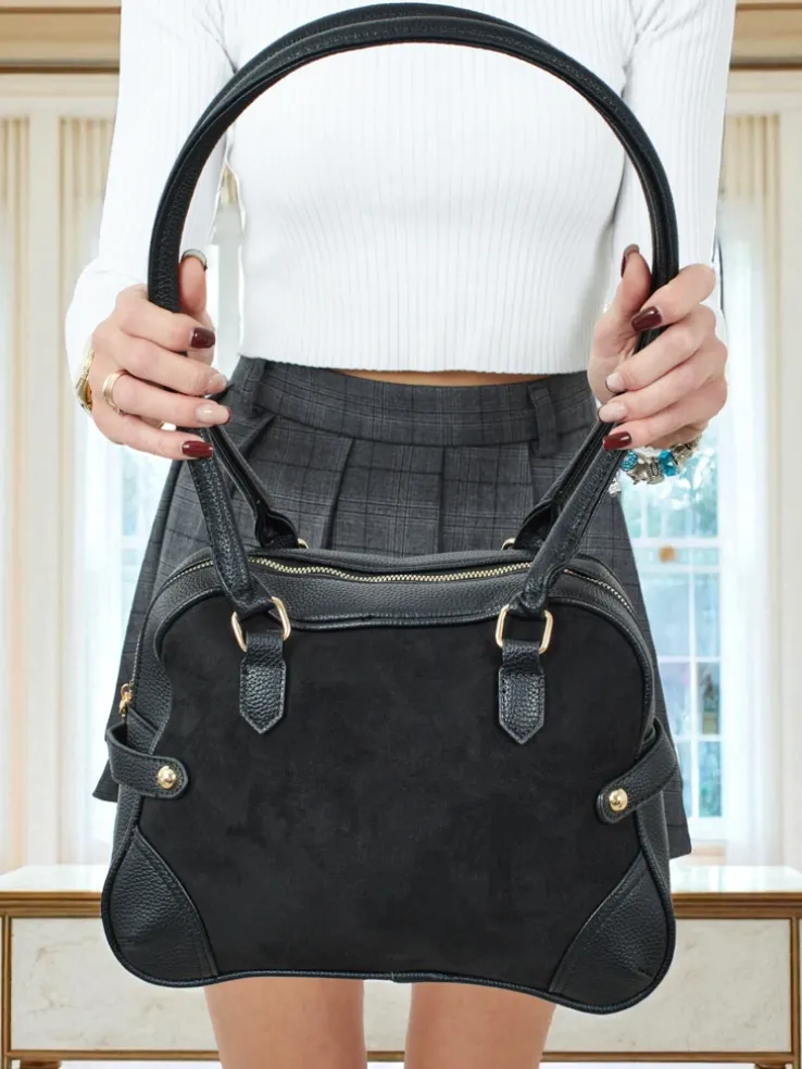 - Elegancka torba damska ze skóry eko zamszowej i wstawkami ze skóry ekologicznej. 1 komora, 4 kieszonki, odpinany, regulowany pasek. Idealna do pracy i na co dzień – pojemna, modna oraz praktyczna.