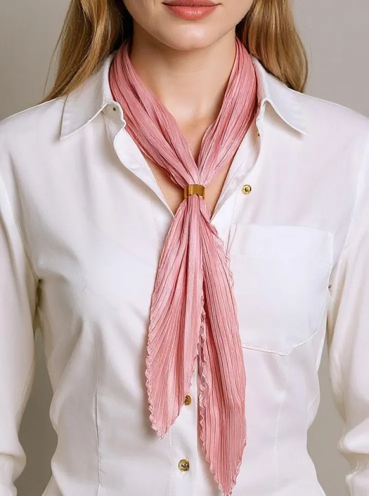 Apollonia Eleganza Jasnoróżowa Apaszka Damska z Plisowanej Tkaniny 69 cm