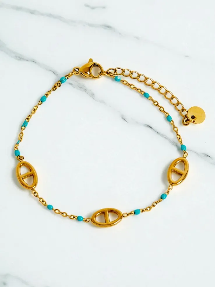 - Bransoletka pozłacana Aurelia Perseus z czerwonymi akcentami – modna biżuteria na każdą okazję.