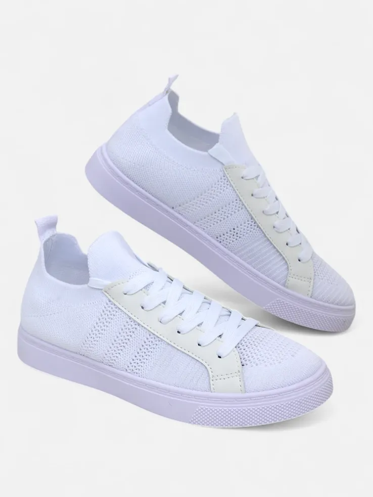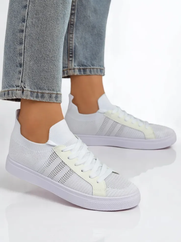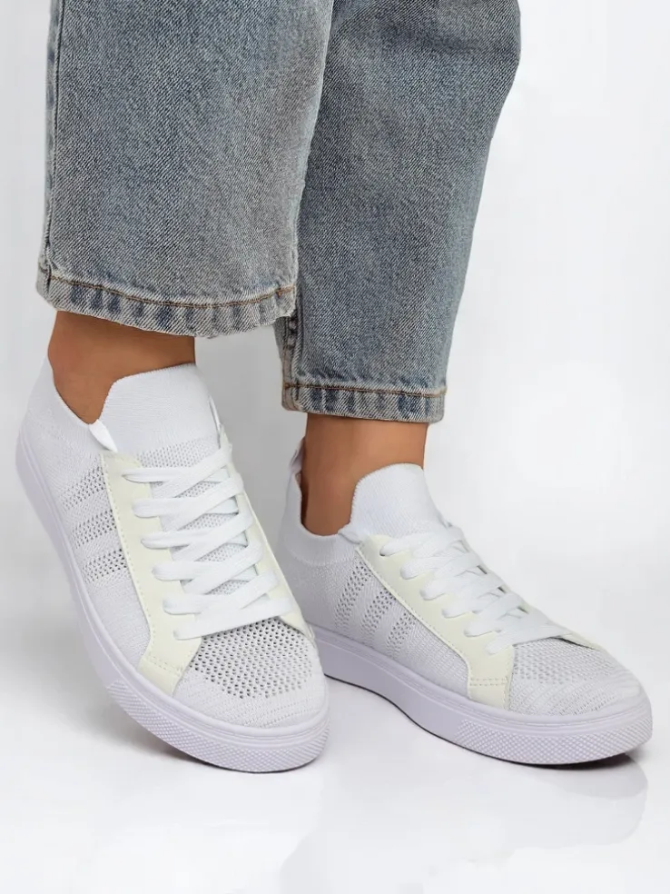 - Damskie trampki wykonane z materiału tkaninowego i eko skórzanych wkładek. Cholewka sznurowana. Podeszwa klasycznie gumowa. Te buty będą świetne na co dzień!