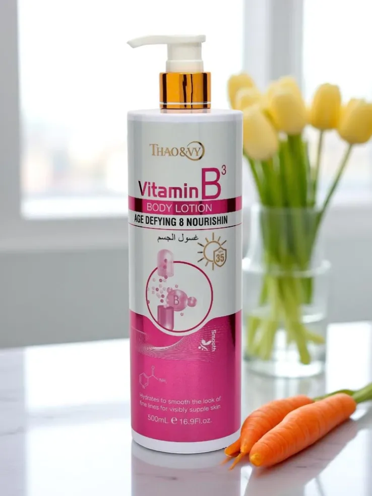 - Przeciwstarzeniowy i nawilżający balsam do ciała z witaminą B3. Redukuje oznaki starzenia, poprawia elastyczność skóry i intensywnie ją nawilża. Lekka formuła wygładza i chroni skórę, pozostawiając ją miękką i promienną.