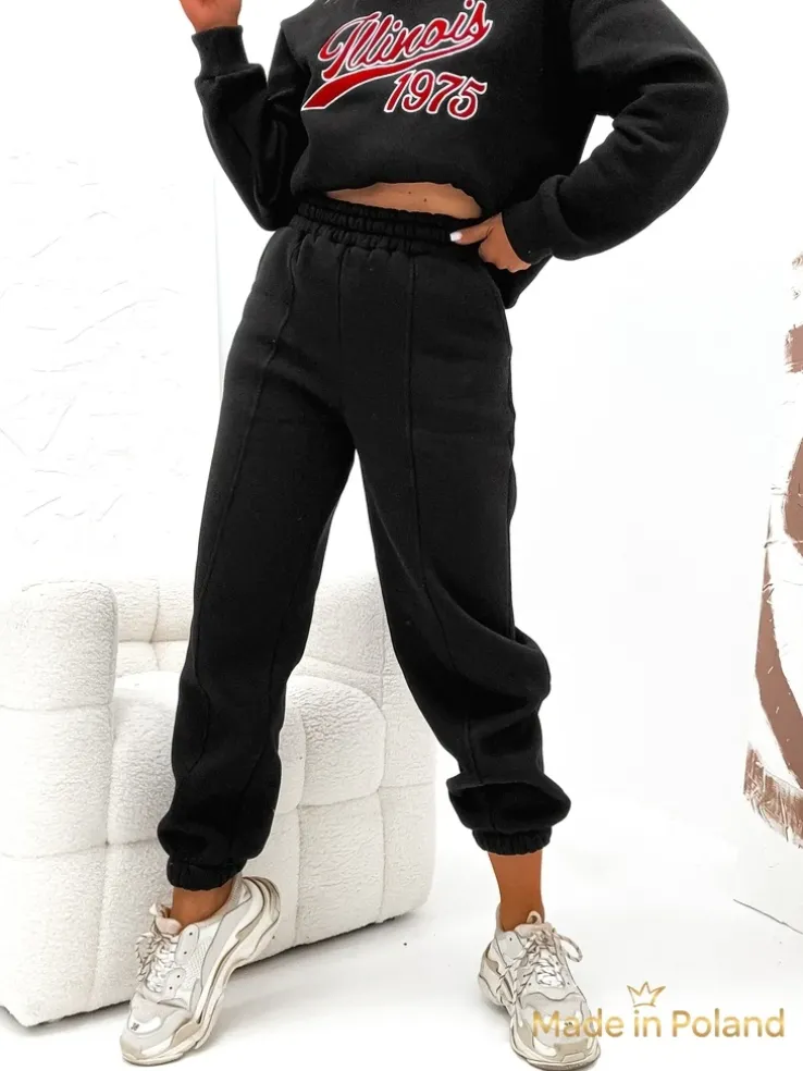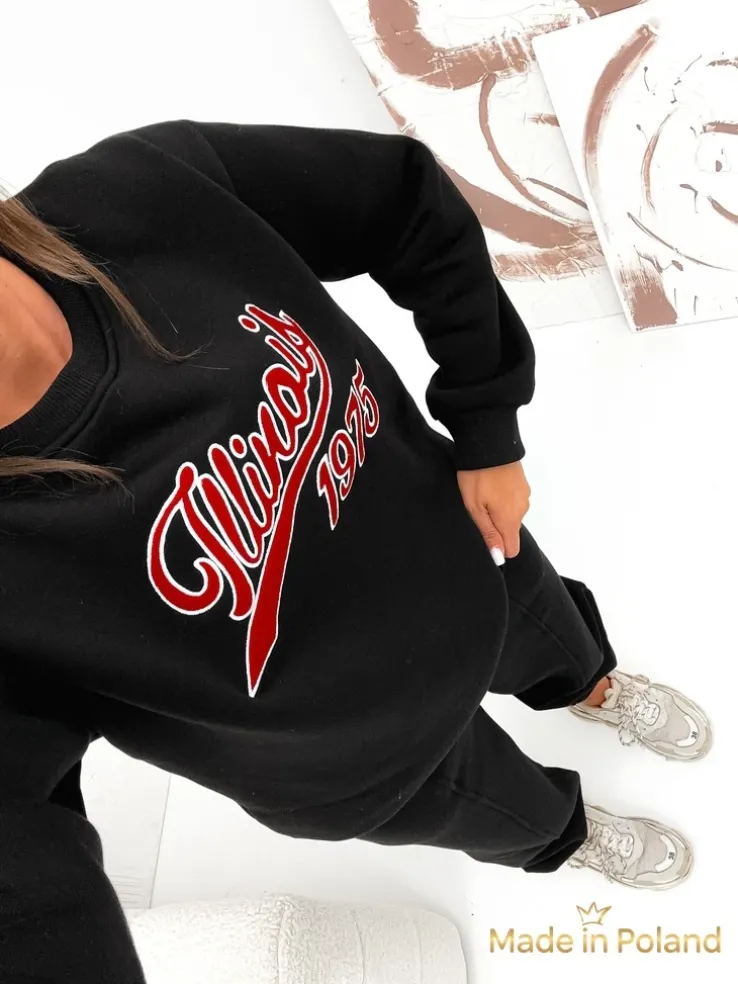 - Damski komplet dresowy wykonany z przyjemnego materiału bawełnianego. Bluza z ozdobnymi napisami. Długie spodnie z gumą w pasie i na nogawkach, z 2 kieszeniami. Poczuj styl w tym wspaniałym komplecie!