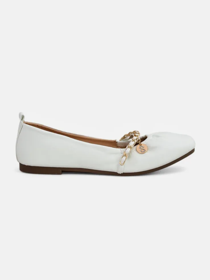 Białe baleriny damskie Callista z łańcuszkiem – skóra ekologiczna, klasyka Włoch