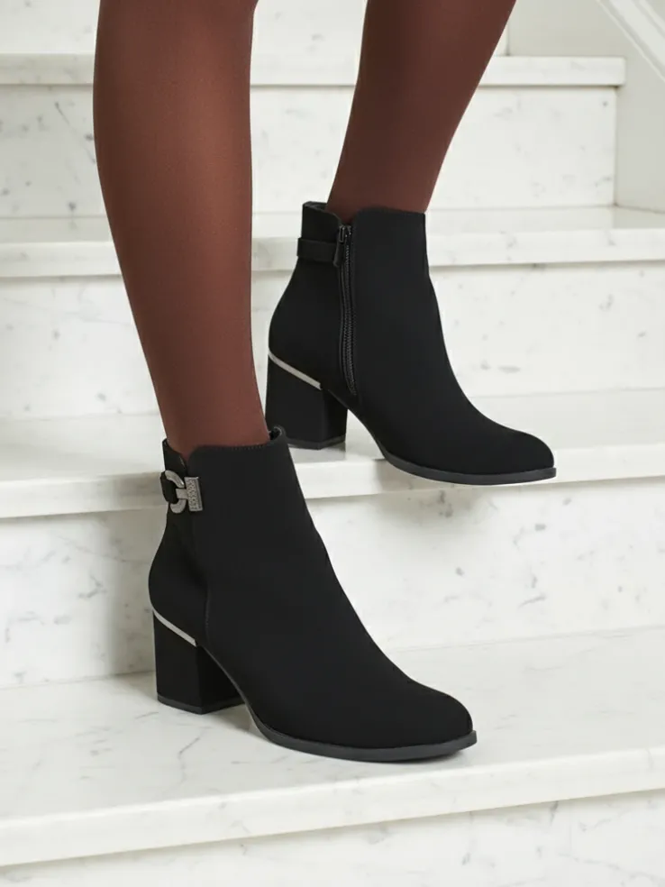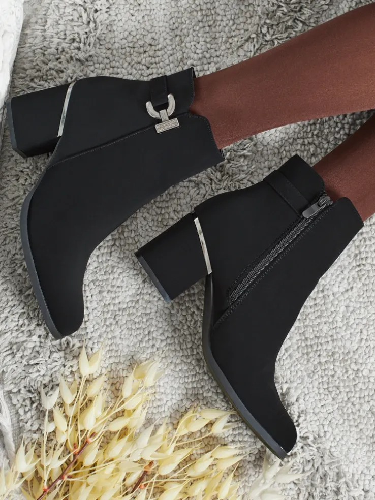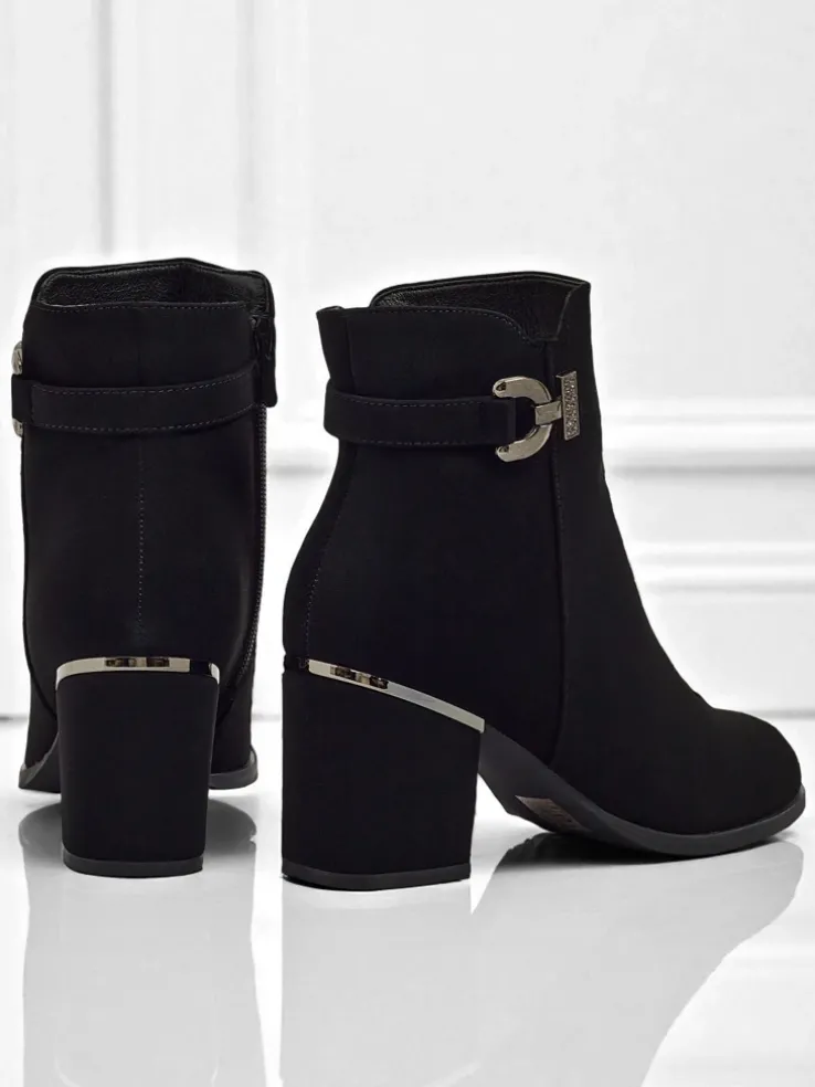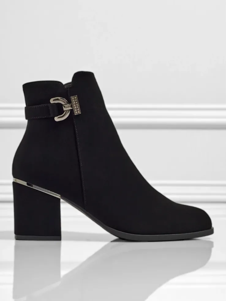 - Wygodne botki na słupku, wykonane z eko skóry matowej. Model zapinany na zamek. Idealny wybór na jesień!