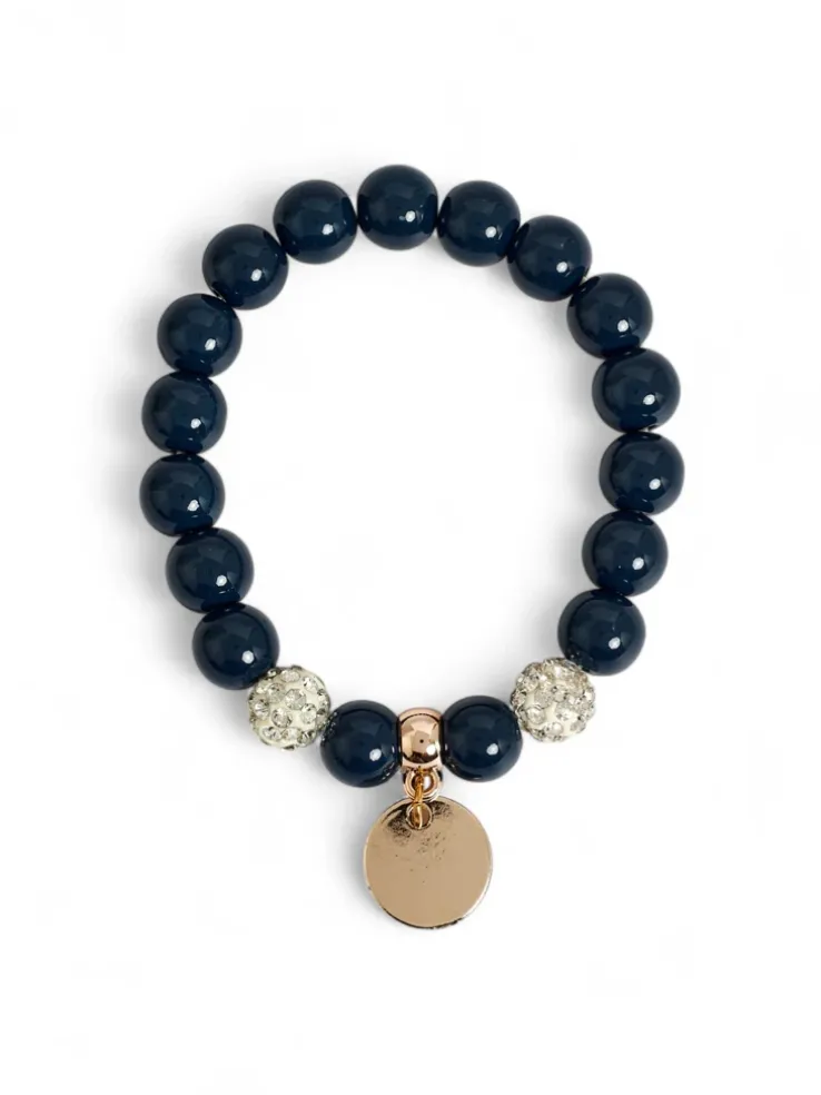 Bransoletka Ariadne Granatowa z Kulek Ceramicznych z Medalionem