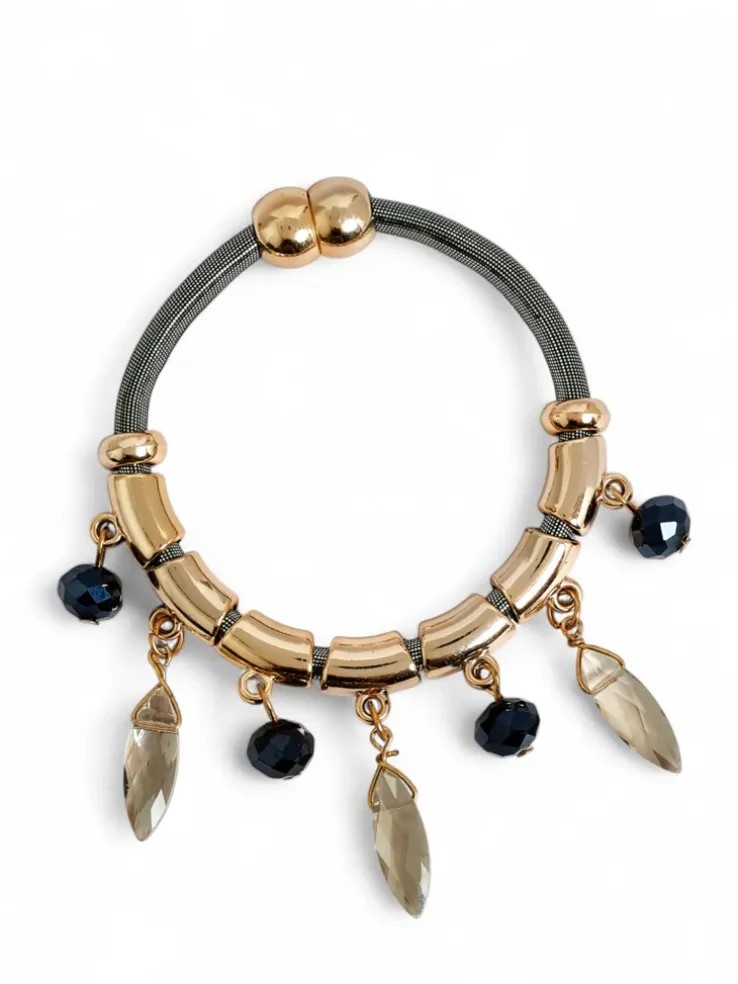 - Kobieca bransoletka z koralikami i subtelnym brokatowym akcentem. Lśni przy każdym ruchu, dodając blasku codziennym i wieczorowym stylizacjom. Lekka, wygodna i pełna uroku.