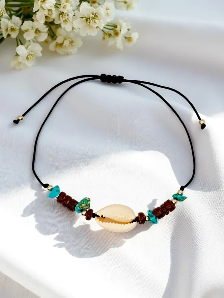 - Delikatna bransoletka na sznurku z regulacją, ozdobiona urokliwą muszelką. Lekka i subtelna, idealna na letnie dni, dodaje nadmorskiego uroku każdej stylizacji. Doskonała na wakacyjne chwile, plażowe przygody lub codzienne akcenty.