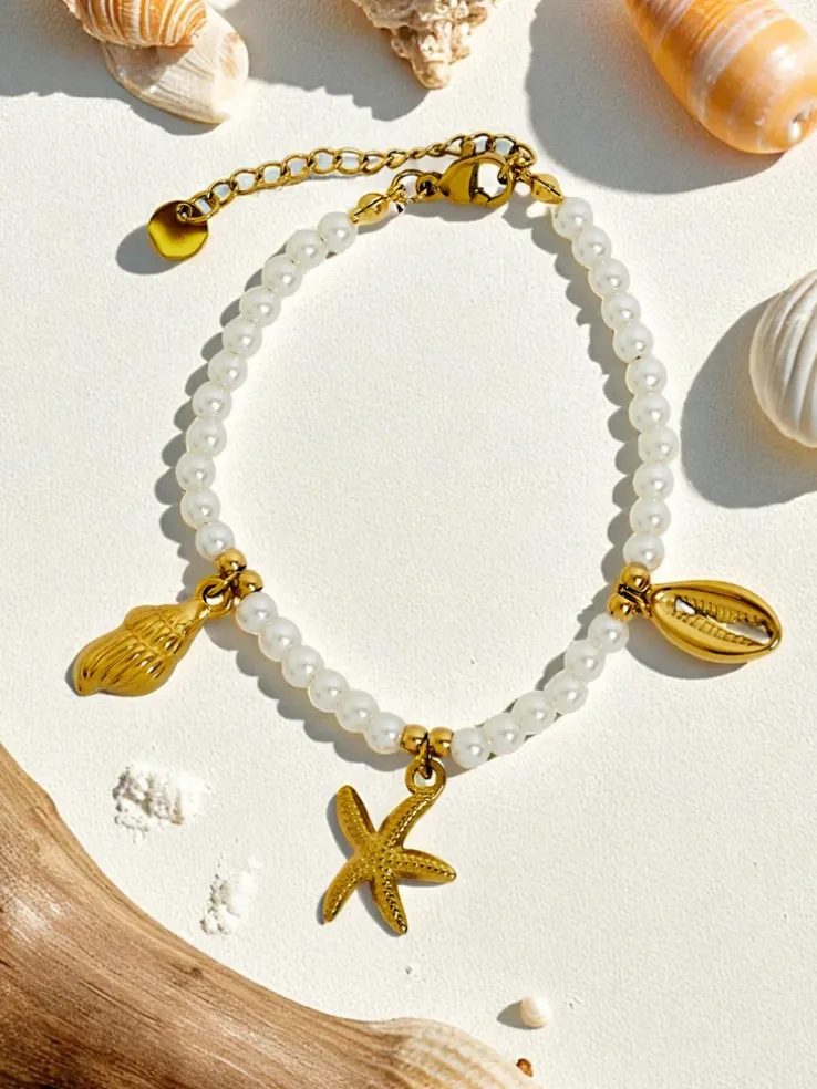 - Złota bransoletka z zawieszkami morskimi. Modny dodatek inspirowany stylem marynistycznym.