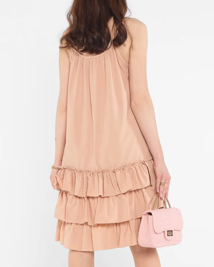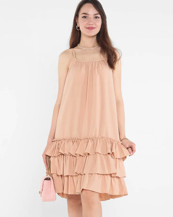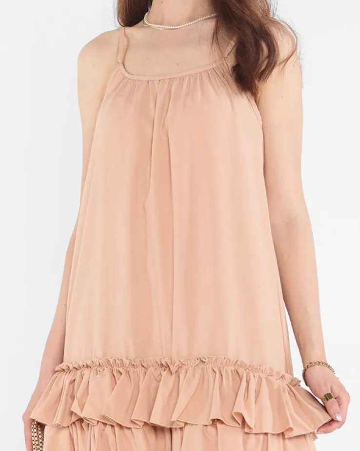 - Prześliczna letnia damska sukienka mini, na cienkich nieregulowanych ramiączkach. Model o prostym kroju z dołem wykończonym falbaną. Idealna sukienka na wiele okazji, niezastąpiona w letnich stylizacjach. UWAGA: Dokładność pomiaru (+/-) 1 cm.