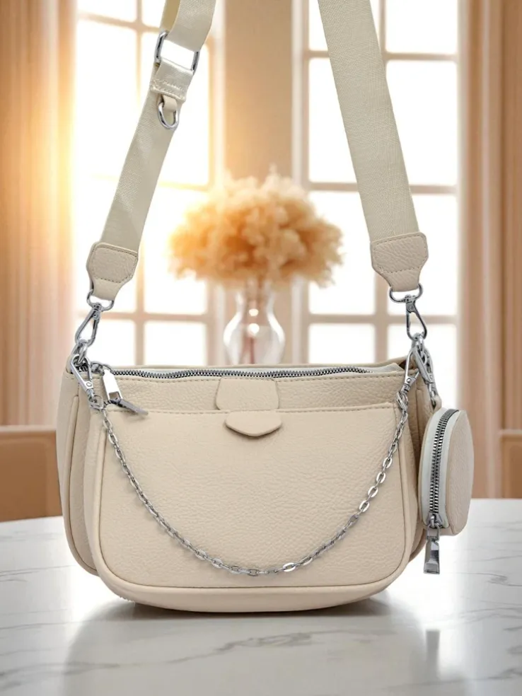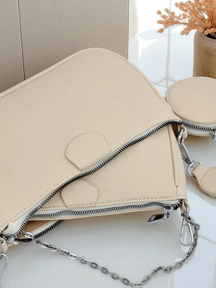 Damska torebka skórzana Perseida Multi Beige z łańcuszkiem i saszetką