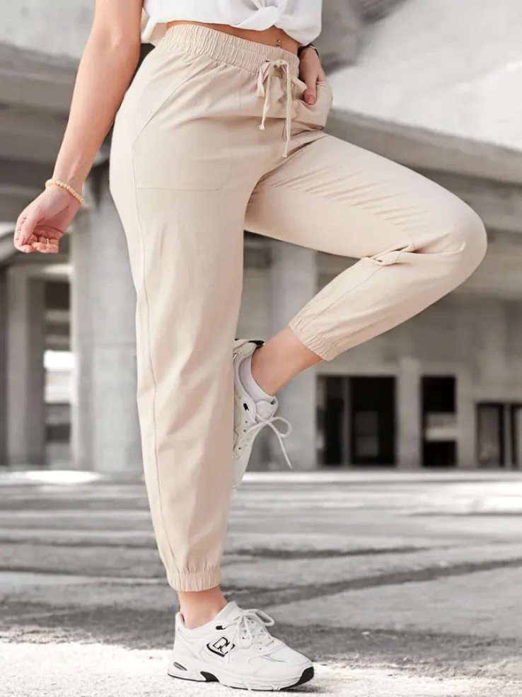 - Fenomenalne zwężane spodnie wykonane z lekkiej tkaniny, model posiada gumę w pasie i troczki. Dodatkowo 2 kieszenie. Hit tego sezonu! UWAGA: Dokładność pomiaru (+/-) 1 cm.