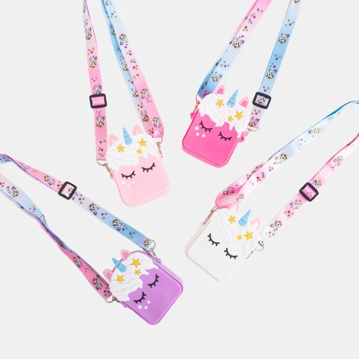 - Prześliczna torebka dla dziewczynek w kształcie jednorożca. Model zapinany na zamek błyskawiczny. W środku jedna komora bez dodatkowych kieszeni. W zestawie długi paseczek przymocowany na karabińczyk i z możliwością regulacji.