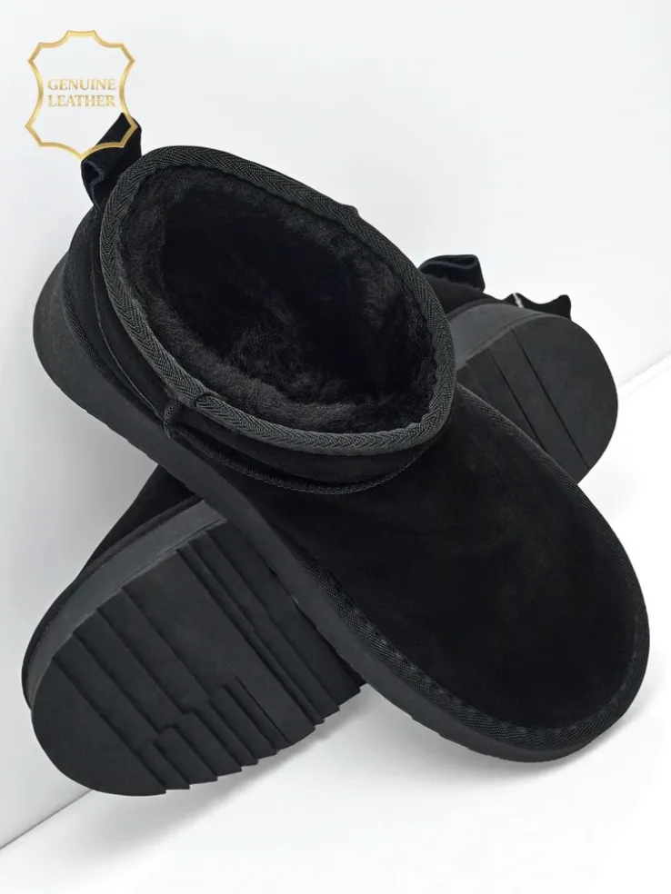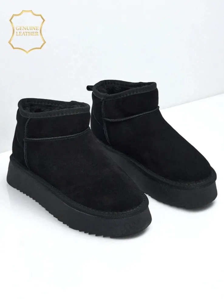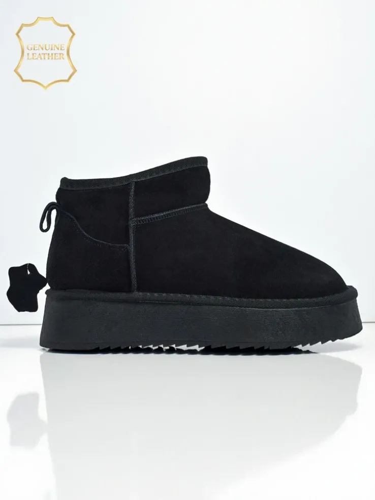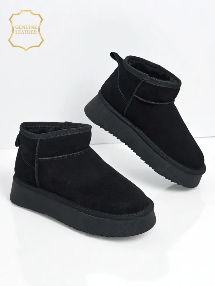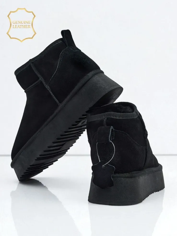 - Świetne damskie zimowe buty typu śniegowce na grubszej podeszwie typu platforma. Cholewka wykonana jest ze skóry naturalnej, środek ocieplony futerkiem. Idealna baza na zimę!