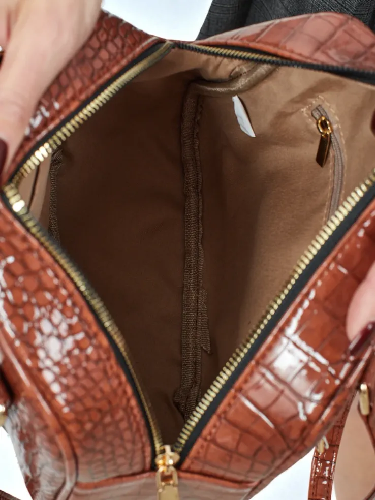 - Torebka z lakierowanej eko skóry z tłoczeniem. 1 komora, 3 kieszonki, długie uszy. Styl i funkcjonalność w perfekcyjnym wydaniu.