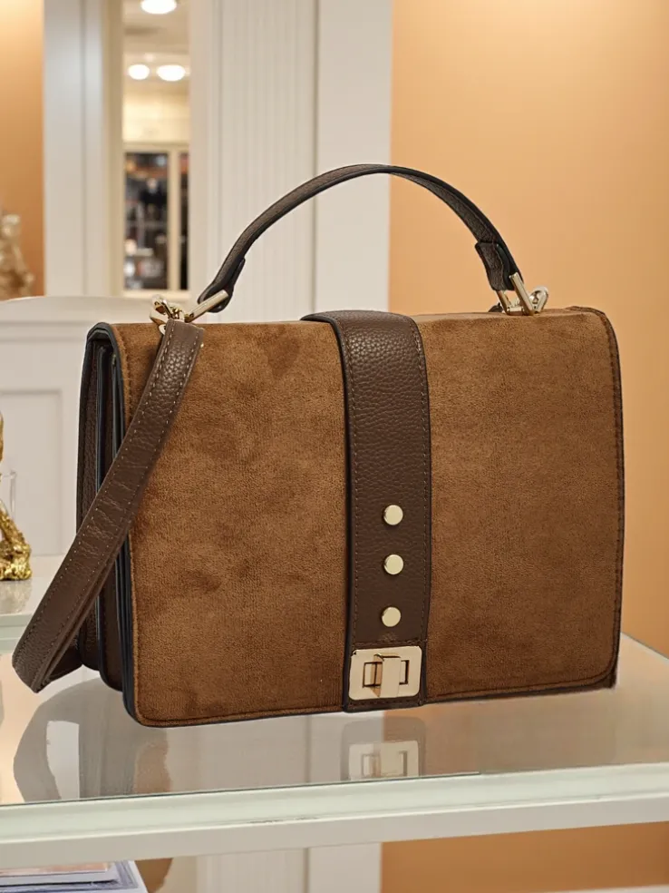 - Mała torebka wykonana z połączenia eko skóry zamszowej i eko skóry. 1 komora z przegrodą, 2 kieszonki, zamek oraz regulowany, odpinany pasek. Styl i funkcjonalność w perfekcyjnym wydaniu.
