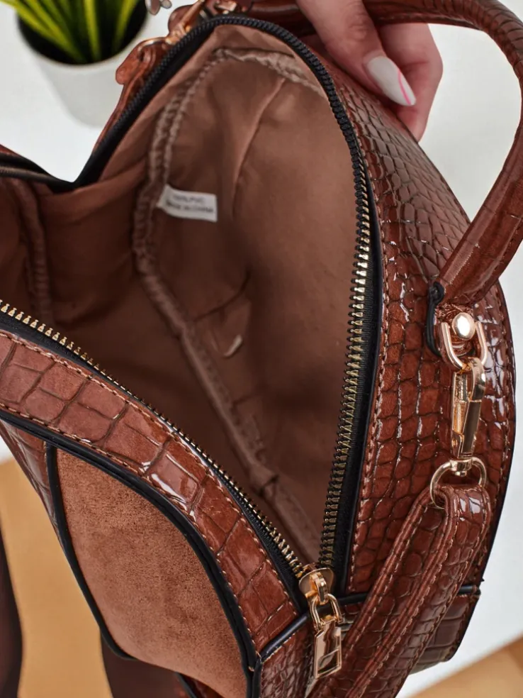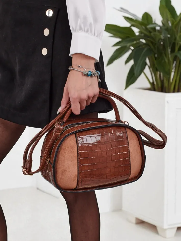 - Stylowa mała torebka z eko skóry lakierowanej i zamszowej. 1 komora, regulowany i odpinany pasek. Idealna na co dzień i na wyjścia – kompaktowa, a pomieści wszystko, co ważne.