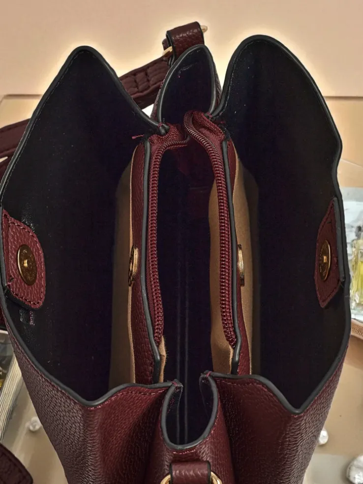 - Mała torebka wykonana z połączenia eko skóry. 1 komora, 3 kieszonki, zamek oraz regulowany pasek. Styl i funkcjonalność w perfekcyjnym wydaniu.