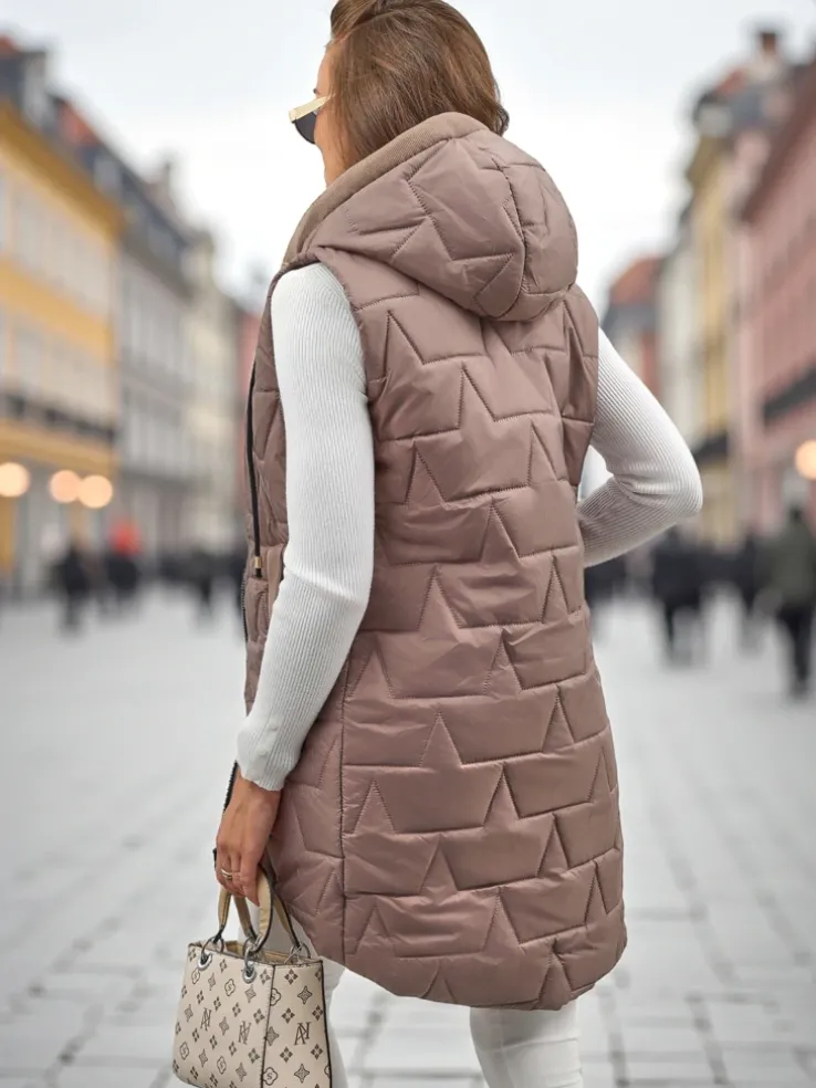 Pikowana długa kamizelka damska z kapturem Echo Shard
