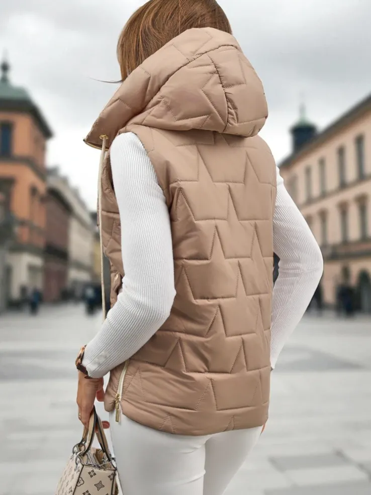 - Rewelacyjna pikowana kamizelka damska. Bezrękawnik zapinany suwakiem, posiada kaptur i 2 kieszenie. Dodatkowo suwaki po bokach. Produkt z wypełnieniem syntetycznym. Świetne dopełnienie jesiennych stylizacji! UWAGA: Dokładność pomiaru (+/-) 1 cm.