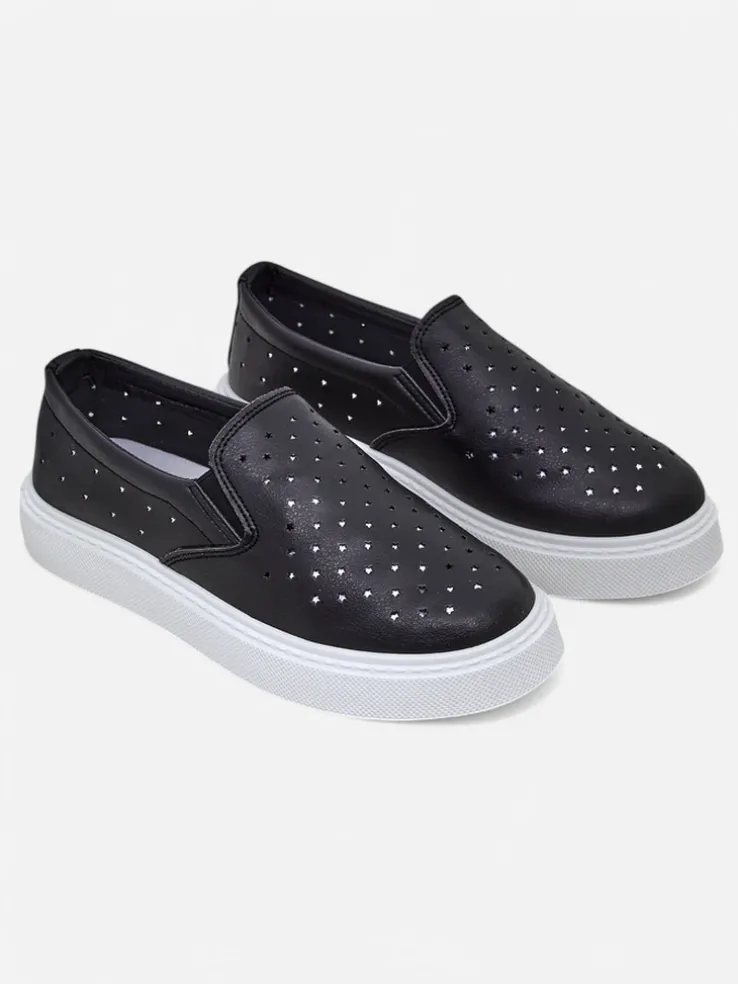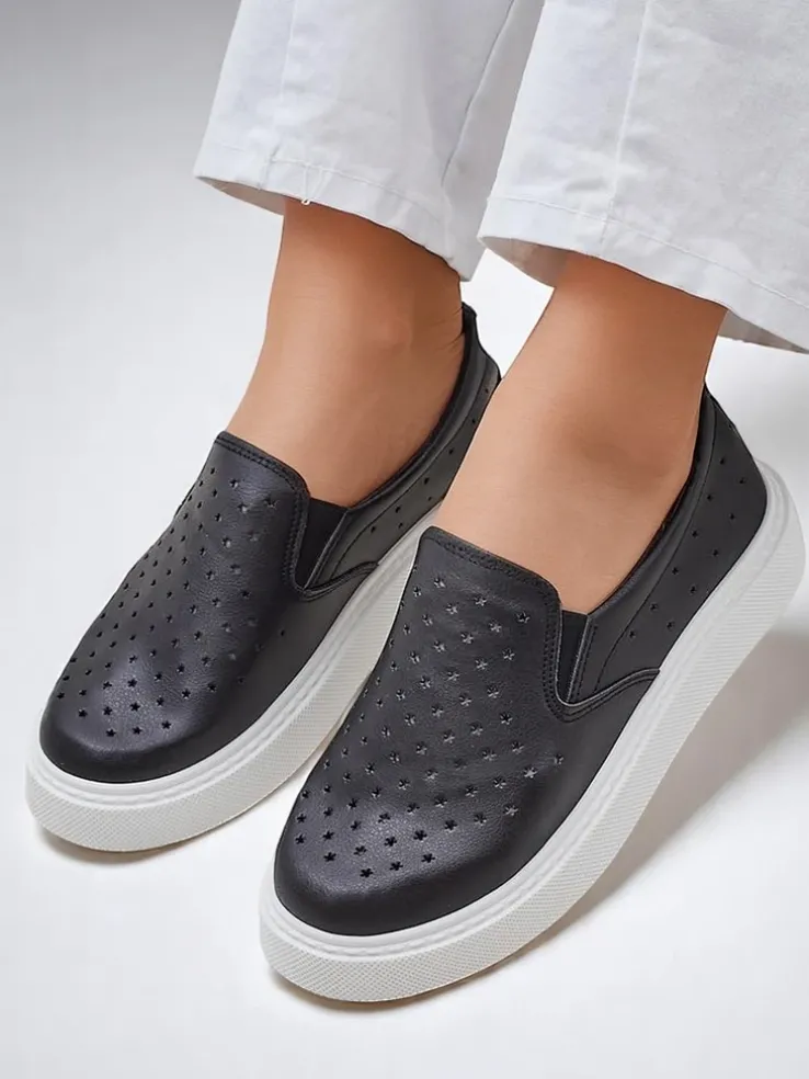 - Ażurowe damskie buty sportowe typu slip on, wykonane ze skóry ekologicznej. Środek wyłożony tkaniną. Idealny wybór na co dzień!