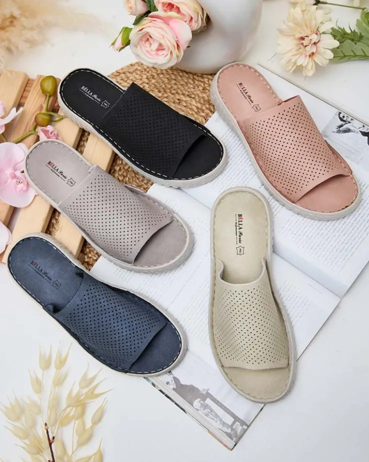 - Świetne damskie ażurowe klapki na płaskiej podeszwie. Niesamowity komfort zapewni im skóra naturalna, z której są wykonane. Idealny wybór na wakacje!
