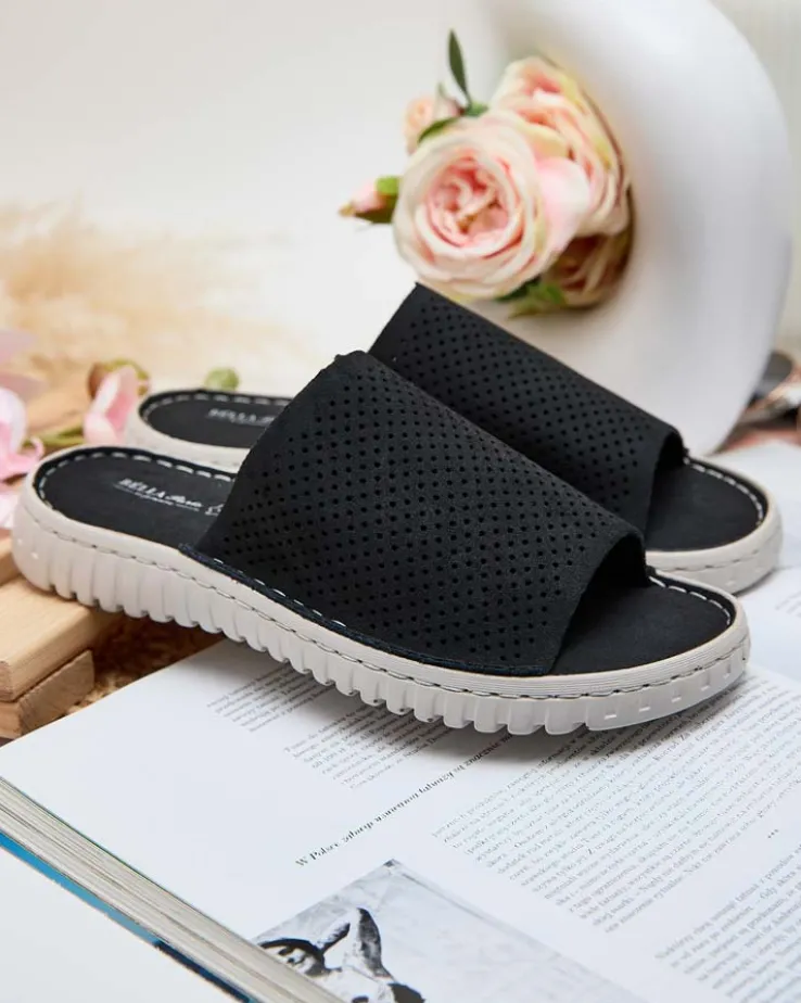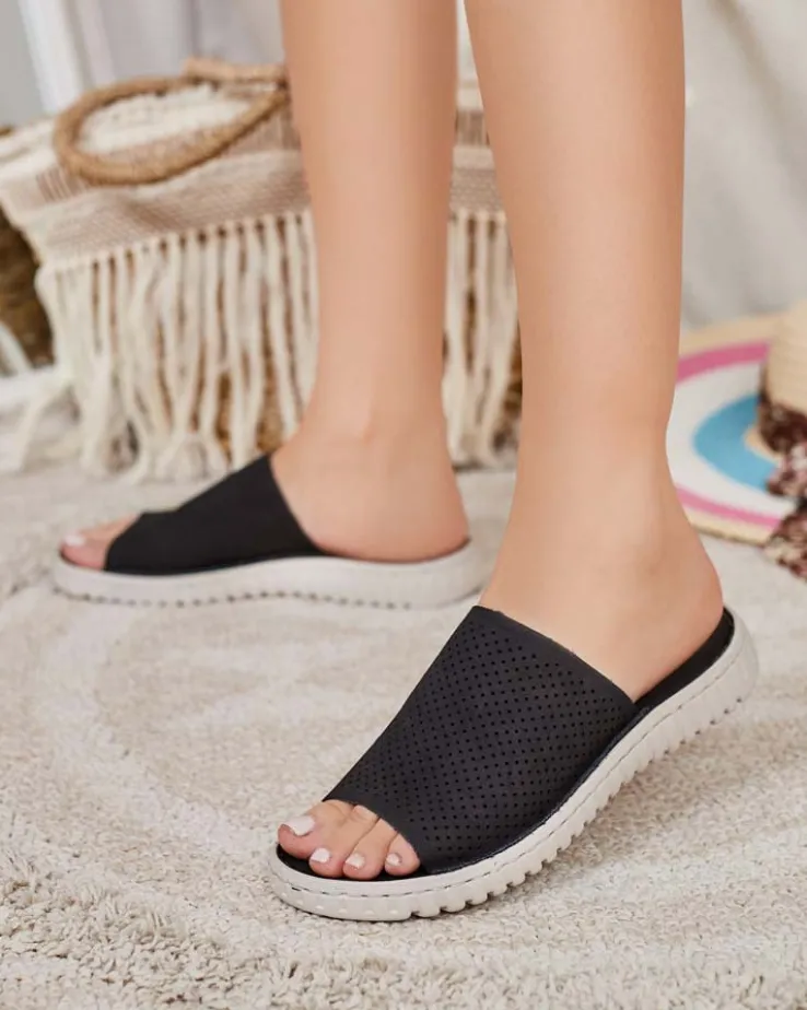 - Świetne damskie ażurowe klapki na płaskiej podeszwie. Niesamowity komfort zapewni im skóra naturalna, z której są wykonane. Idealny wybór na wakacje!