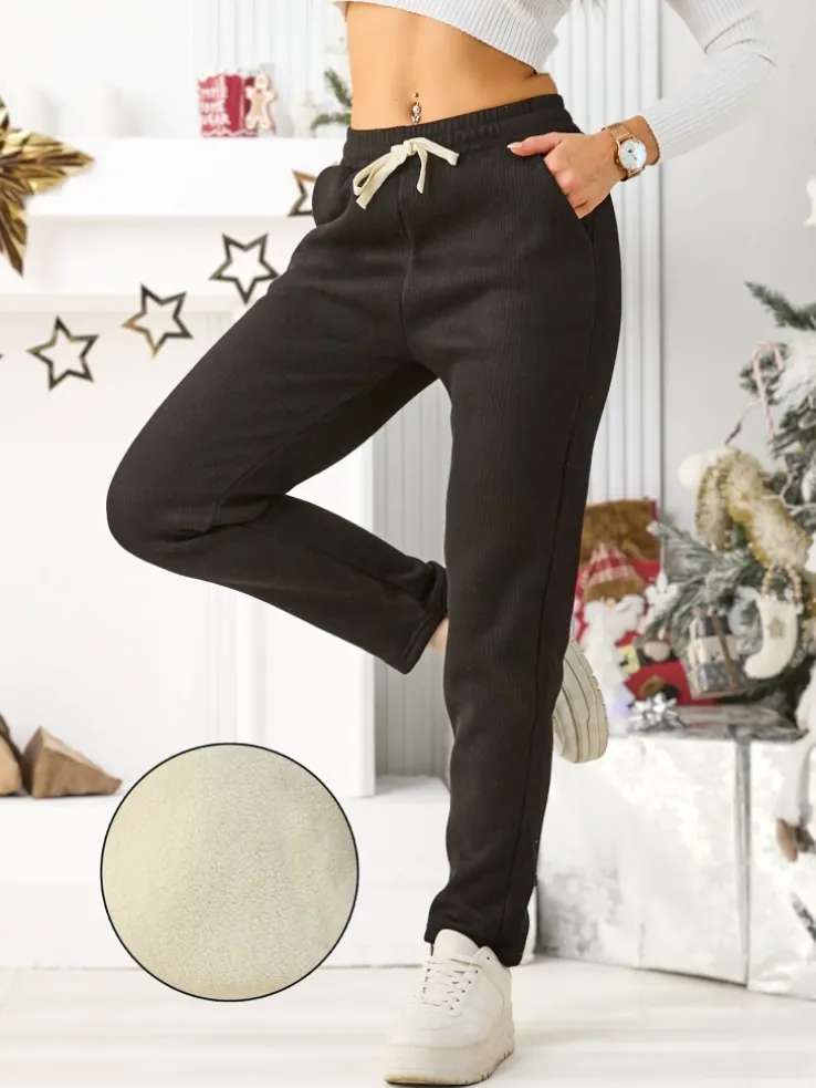- Ponadczasowe damskie spodnie dresowe, wykonane z miękkiego, prążkowanego materiału. Model o prostym kroju, posiada dwie wsuwane kieszenie i gumę w pasie i troczki. Idealny wybór na co dzień!