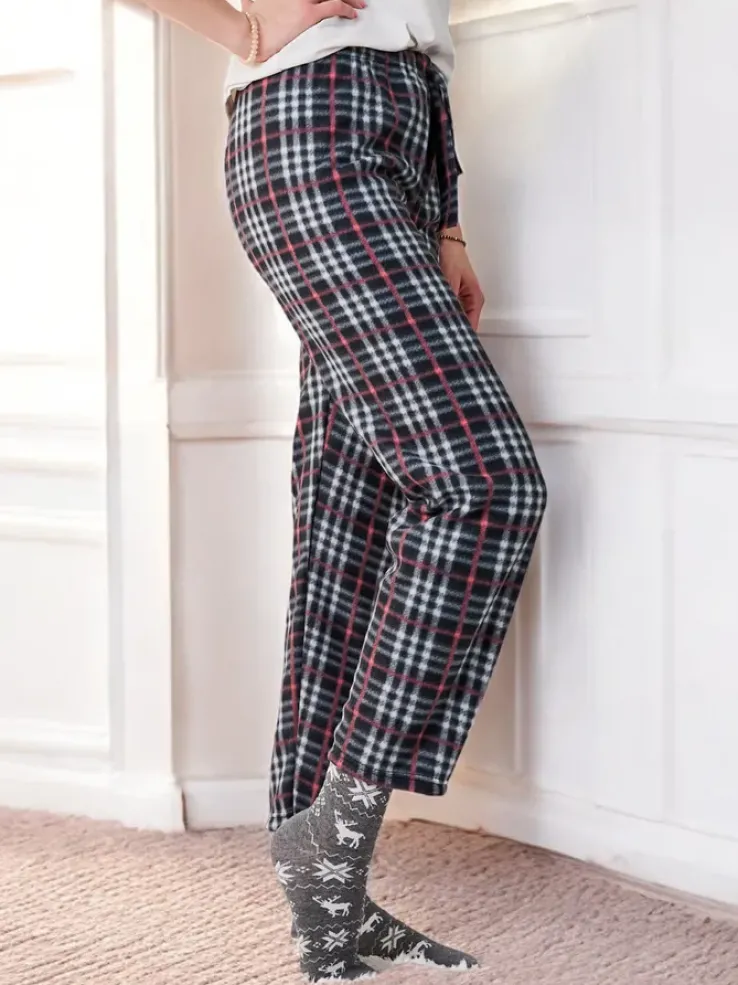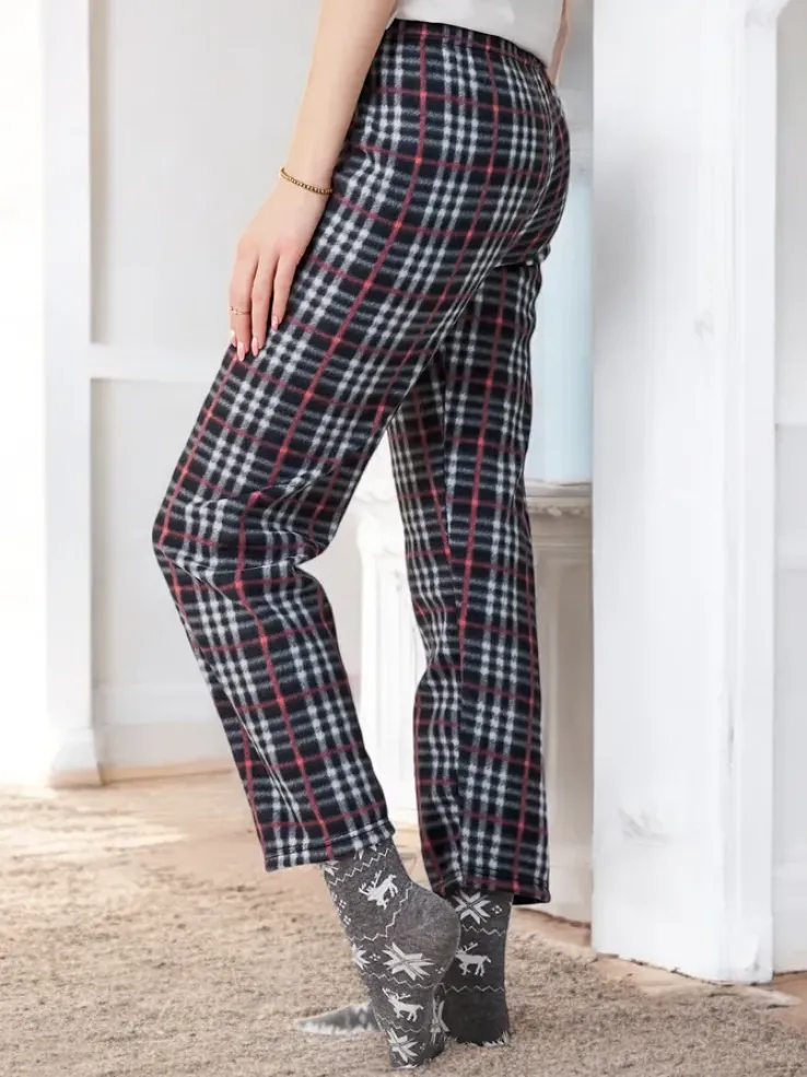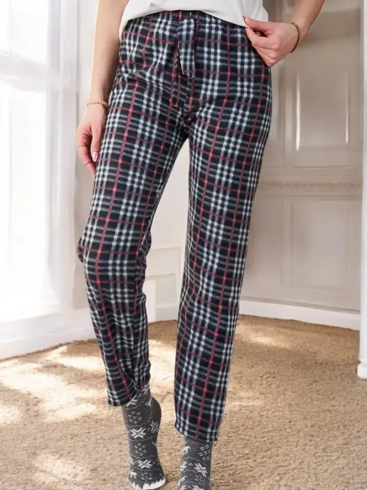 Royalfashion Bawełniane świąteczne spodnie damskie od piżamy w kratę