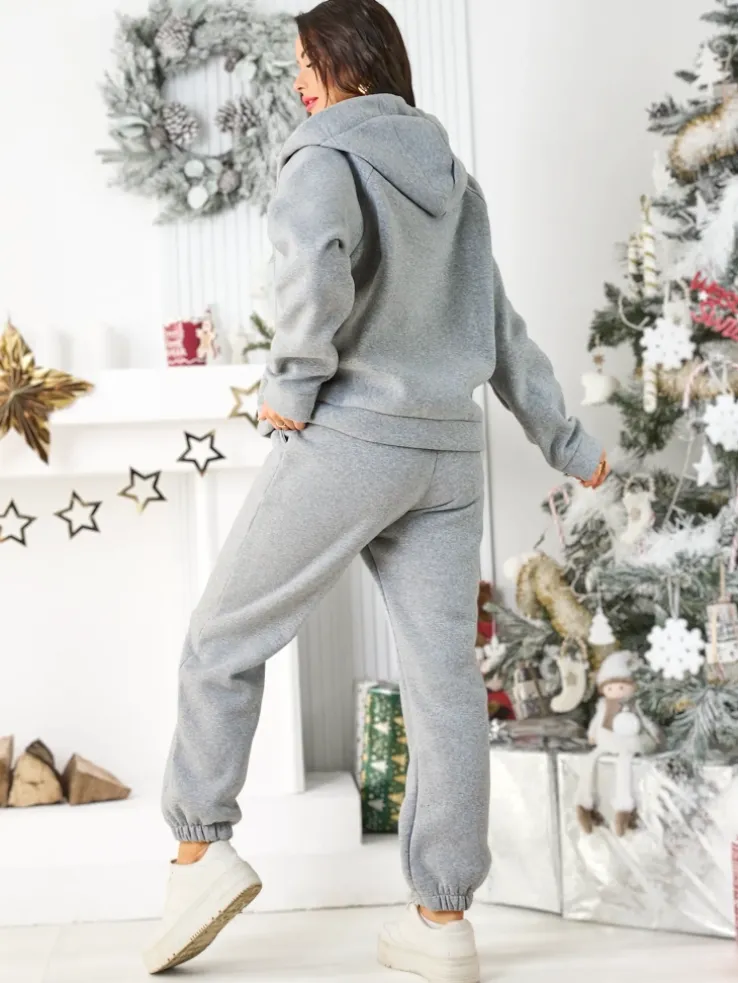 - Wygodny damski komplet dresowy – składa się z bluzy na suwak oraz z długim rękawem i kapturem. Spodnie z gumką w pasie i 2 kieszeniami. Must have na co dzień! UWAGA: Dokładność pomiaru (+/-) 1 cm.