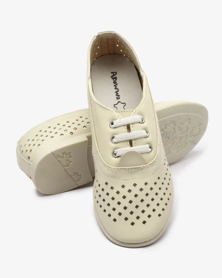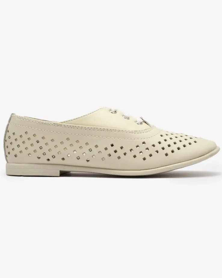 - Wyjątkowe dziecięce półbuty wykonane ze skóry ekologicznej. Cholewka posiada ażurowe wykończenie, model wsuwany. Wkładka wyłożona skórą naturalną. Idealnie sprawdzą się na długim spacerze!