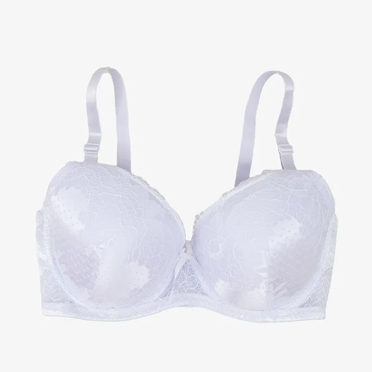 - Damski usztywniany biustonosz z koronkowymi miseczkami. Model zapinany z tyłu, posiada regulowane i odpinane ramiączka. Komfortowa bielizna dla kobiet!