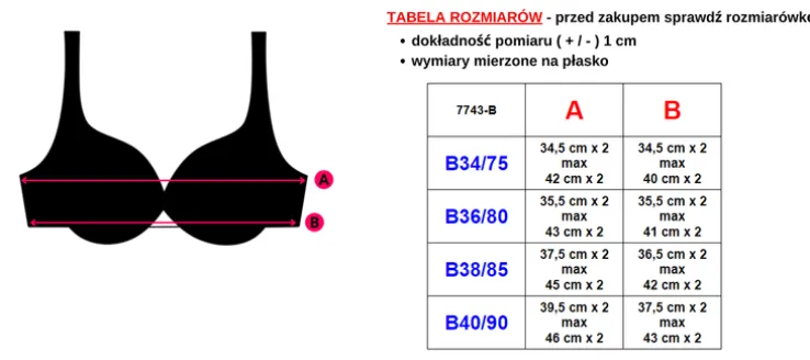 - Biustonosz z push-up i usztywnianymi miseczkami na fiszbinach, które powiększają biust i podkreślają dekolt. Model na regulowanych i odpinanych ramiączkach. Model bez zapięcia. Nie posiadają wyjmowanych wkładek. UWAGA: Dokładność pomiaru (+/-) 1 cm.