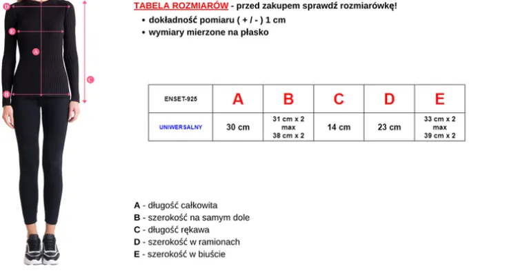 - UWAGA: Dokładność pomiaru (+/-) 1 cm.