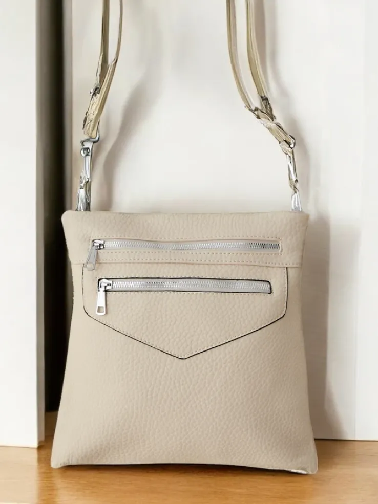 - Damska torebka zapinana na zamek, wykonana ze skóry ekologicznej.