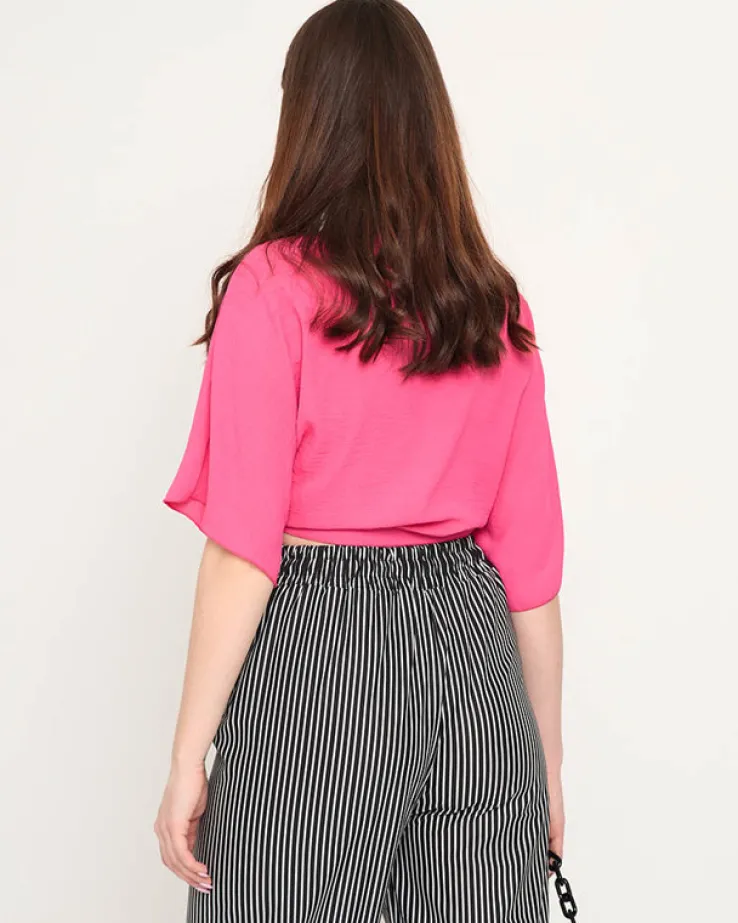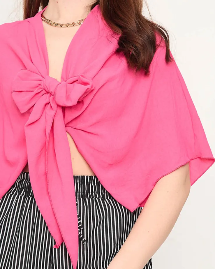 - Krótka damska narzutka wykonana z materiału poliestrowego. Możliwość wiązania w pasie, rękawy o długości 3/4. UWAGA: Dokładność pomiaru (+/-) 1 cm.