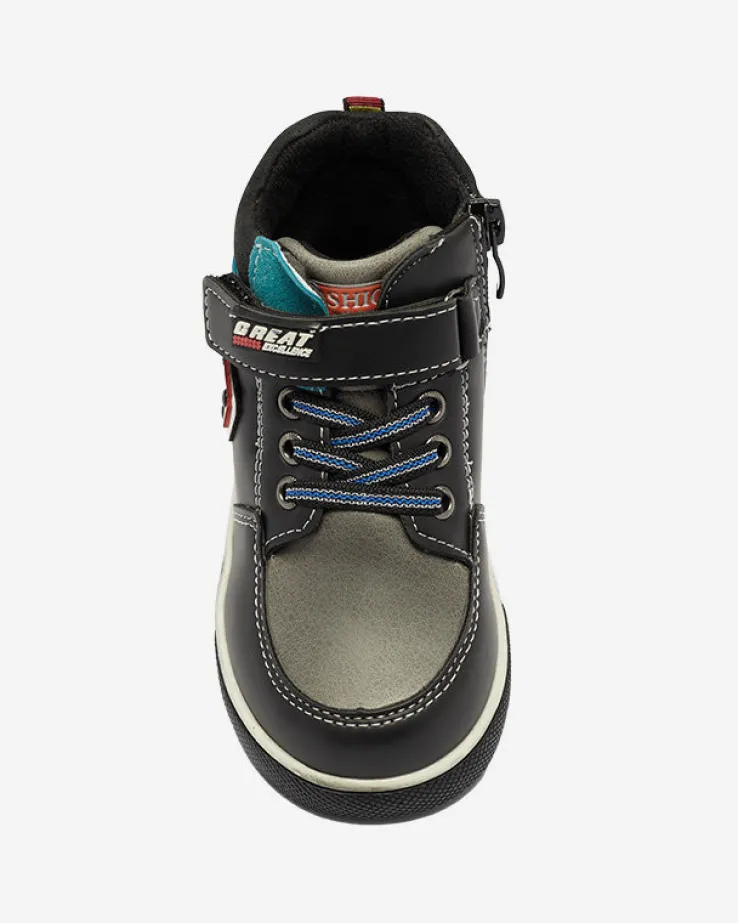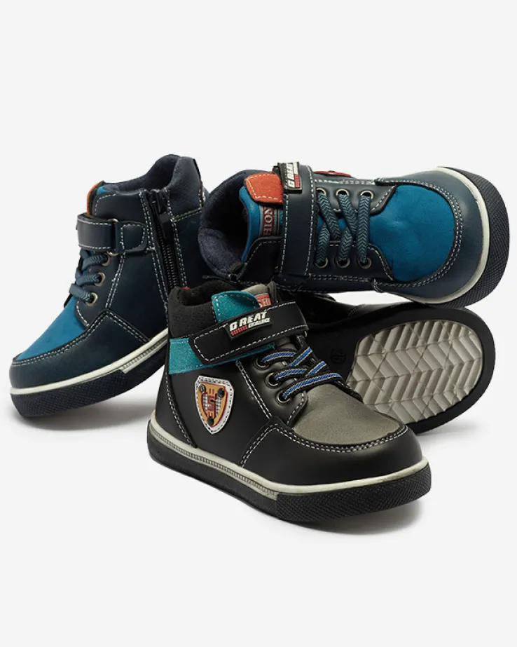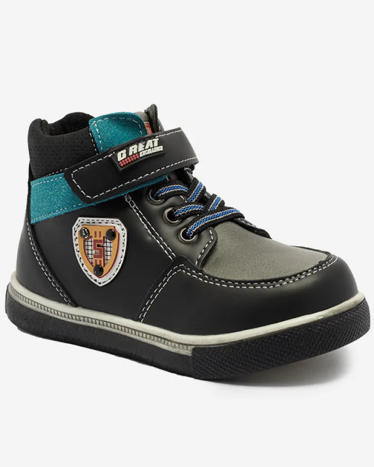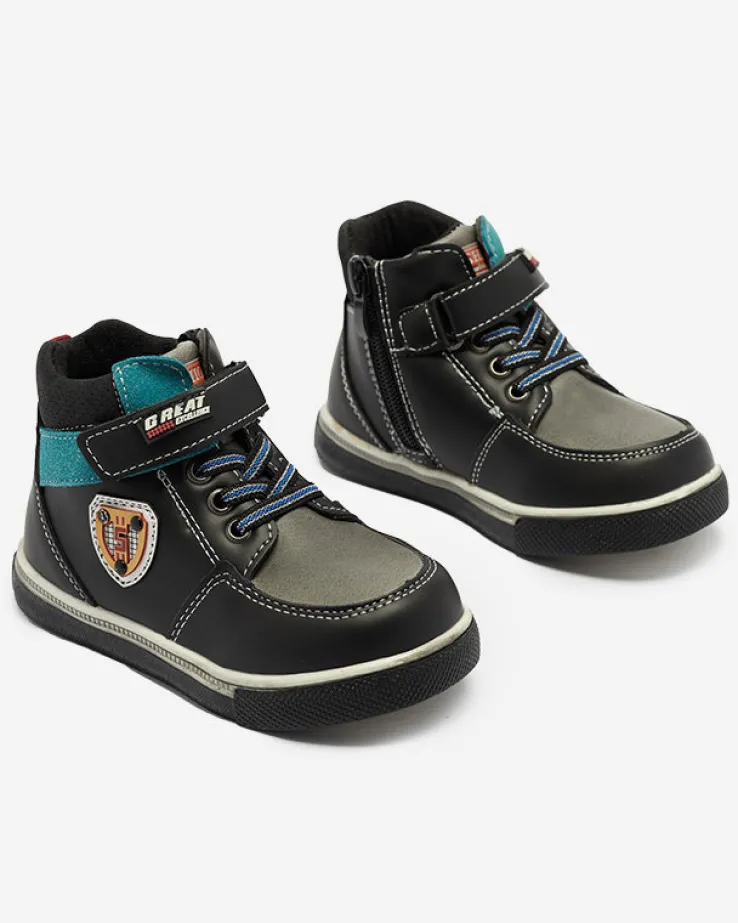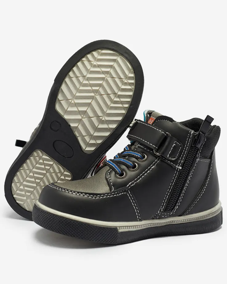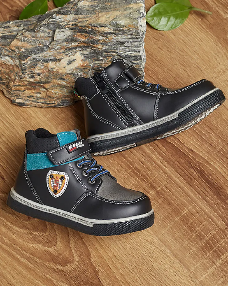 - Stylowe chłopięce botki na płaskiej podeszwie zapinane na zamek i rzepy, wykonane ze skóry ekologicznej. Środek buta jest wyłożony tkaniną. Idealne na jesień! CZARNE BUTY ZIMOWE BOTKI DZIECIĘCE WIASIO