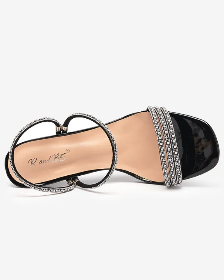 - Nietypowe damskie klapki wykonane ze skóry ekologicznej lakierowanej. Model posiada paseczki ozdobione cyrkoniami i perełkami. Klapki posiadają niski obcas i kwadratowy nosek. Oryginalne obuwie, które wpasuje się do wielu stylizacji!