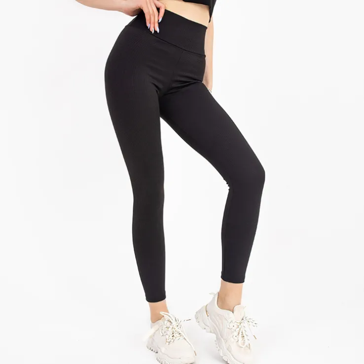 - Stylowe damskie prążkowane legginsy z wysokim stanem – must have w szafie kobiety! Model wykonany z elastycznej tkaniny i posiada szeroką gumę w pasie. Doskonałe na trening! UWAGA: Dokładność pomiaru (+/-) 1 cm.