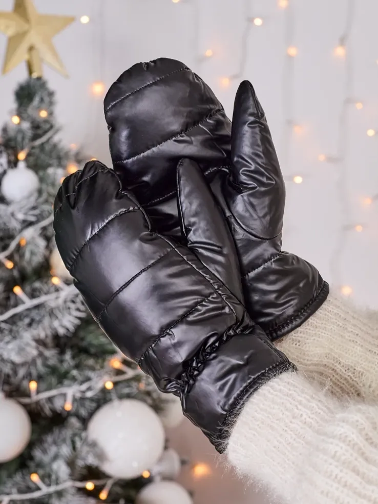- Cieplutkie rękawiczki eskimoski, wykonane z materiału a’la cerata. Wewnątrz miękka, futrzana podszewka. Idealne na mroźne dni!