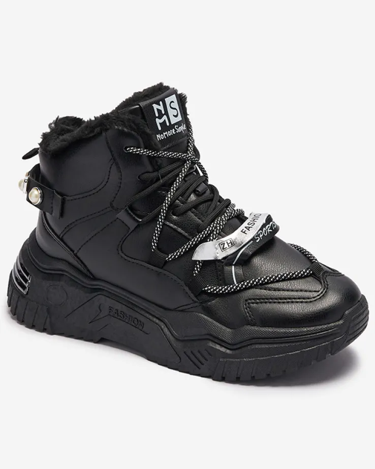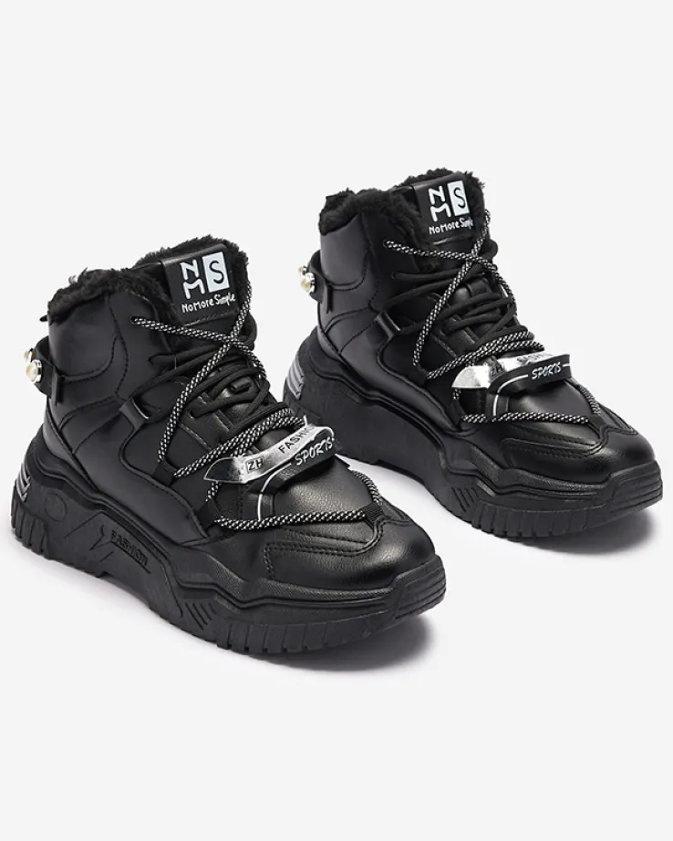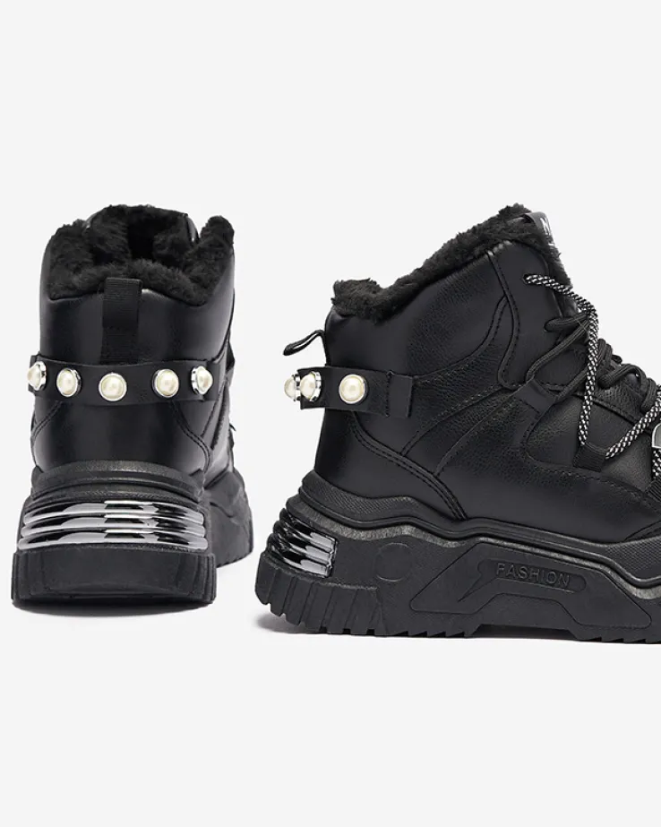 - Ocieplane futerkiem damskie sneakersy sportowe na masywnej podeszwie. Model zdobiony ozdobnymi wstawkami i perełkami, wiązany na podwójne sznurowanie. Świetnie się sprawdzą na chłodniejsze dni do codziennych outfitów!