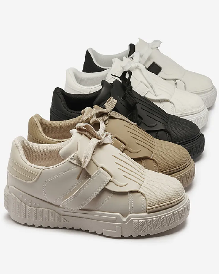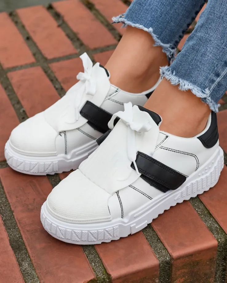 - Super modne damskie buty sportowe, wykonane z matowej skóry ekologicznej. Produkt jest sznurowany i posiada gumowy nosek oraz język. Po bokach cholewki ozdobne zapięcie na rzepy, środek wyłożony materiałem tkaninowym. Must have tego sezonu!