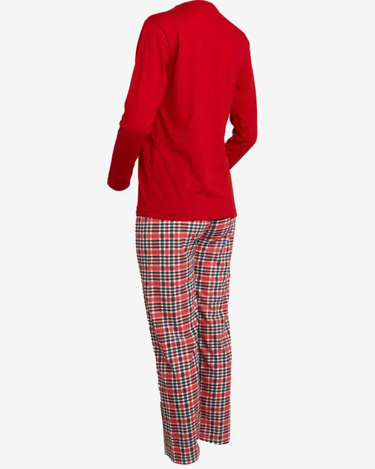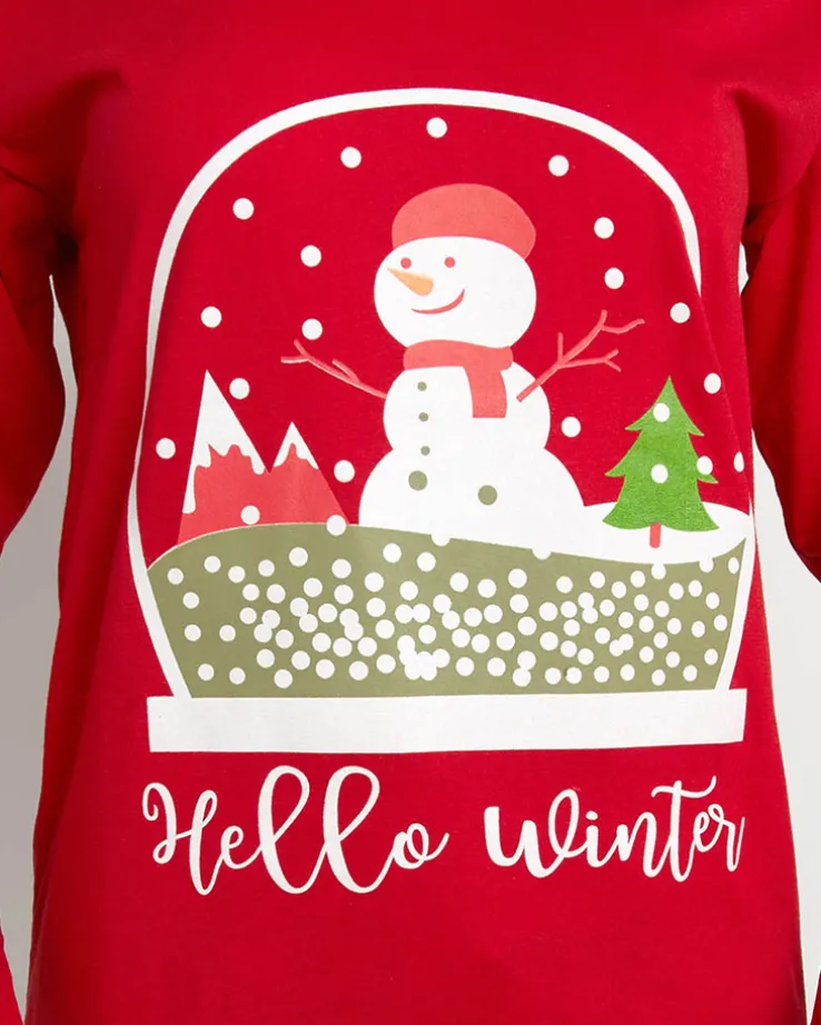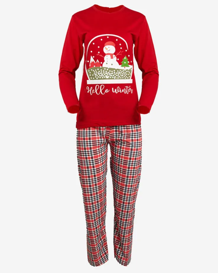- Damska 2-częściowa piżama wykonana z tkaniny bawełnianej wykończonej ozdobnym printem z bałwankiem. Komplet posiada bluzkę z długimi rękawami oraz spodnie z gumą w pasie i prostymi nogawkami. UWAGA: Dokładność pomiaru (+/-) 1 cm.